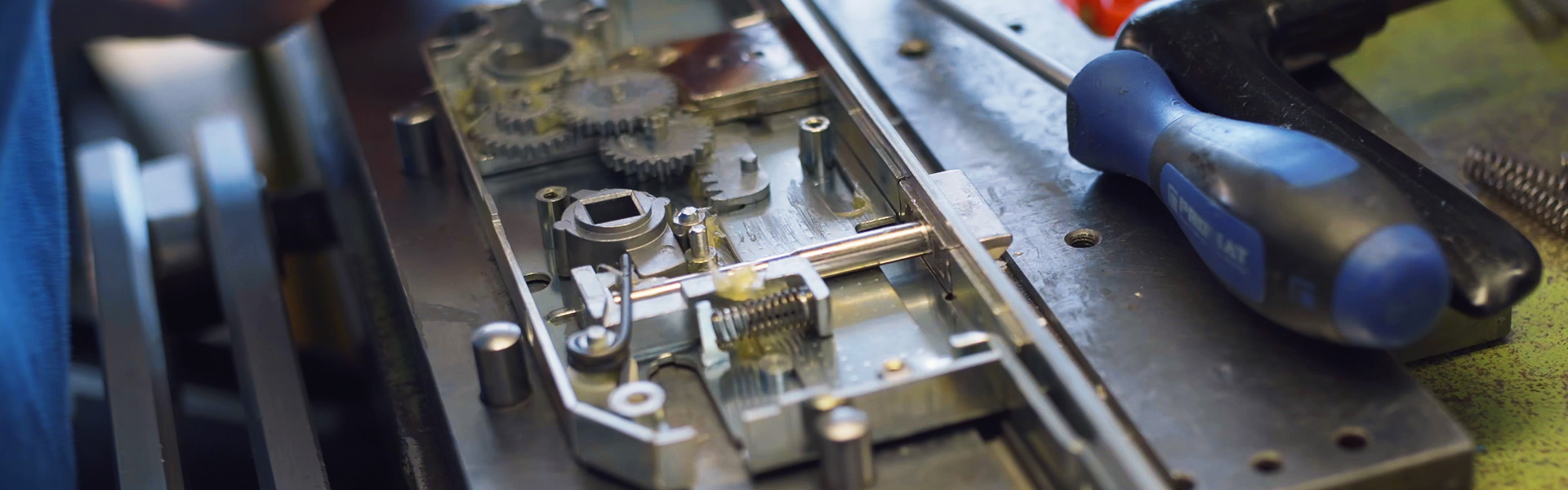 GSG Baubeschläge GmbH - Die Montage von Metallteilen ist ein bedeutsamer Part in der Herstellung von Baubeschlägen. In diesem Prozess werden zuvor gefertigte Komponenten wie gestanzte, gebogene, geschweißte oder genietete Teile zu funktionalen Endprodukten zusammengefügt. Den Prozess der finalen Montage durchlaufen die meisten unserer Baubeschläge: Tür- und Fensterbeschläge Fensterdrehstangen, Torbeschläge Scharniere, Schlösser.